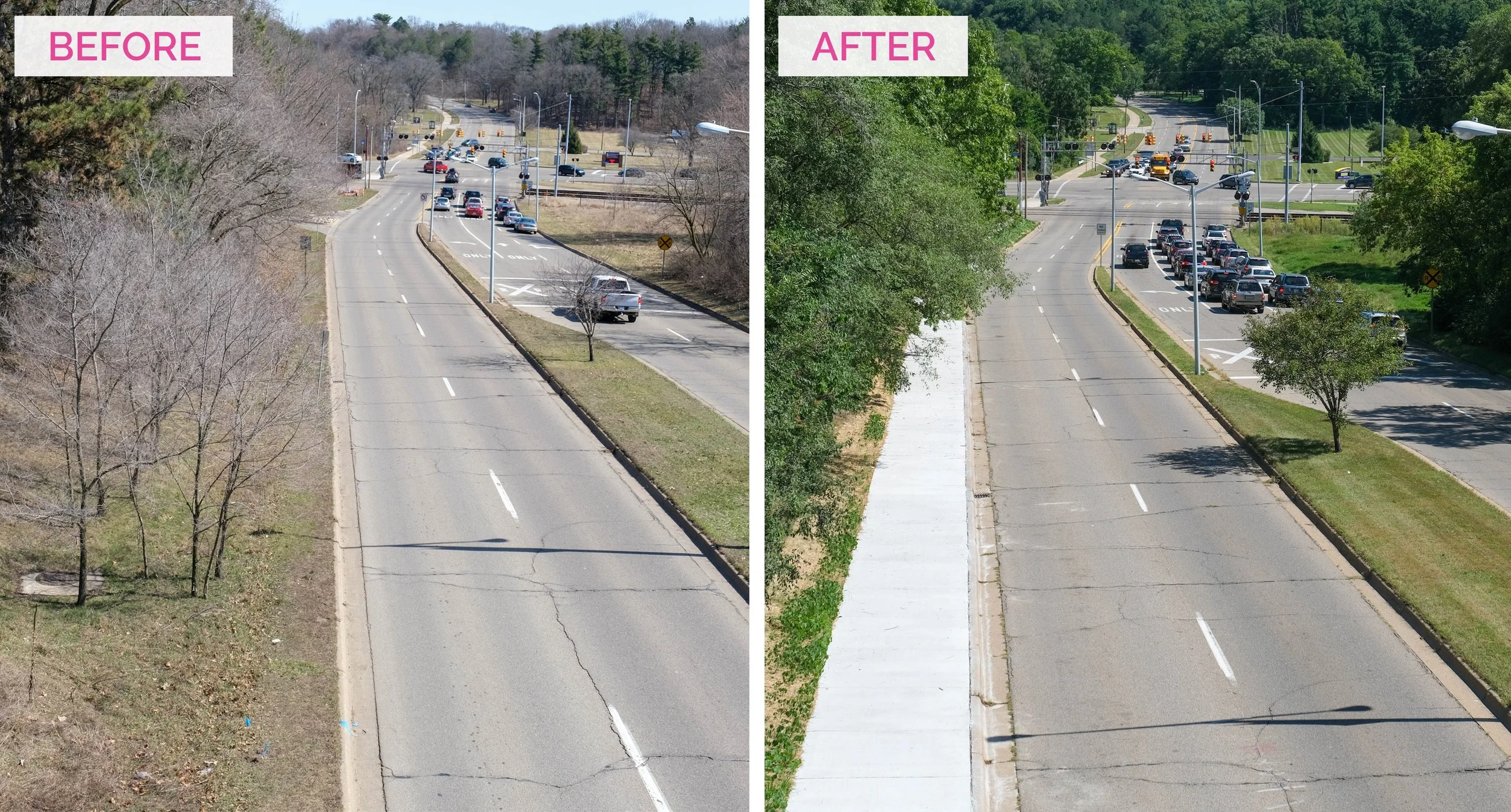 Completed Shared Use Path on Howard St. - Before and After Implementation